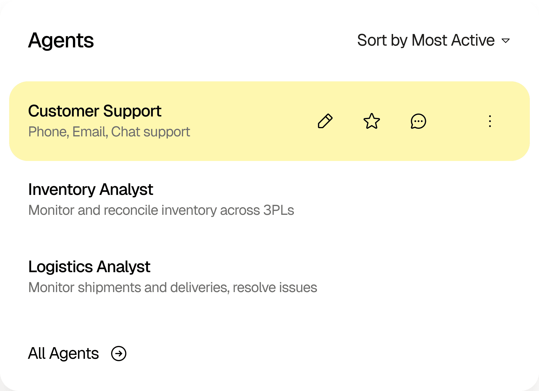 See every action as it happens. Monitor agent decisions, track outcomes, and drill into any workflow. One view across your entire operation.